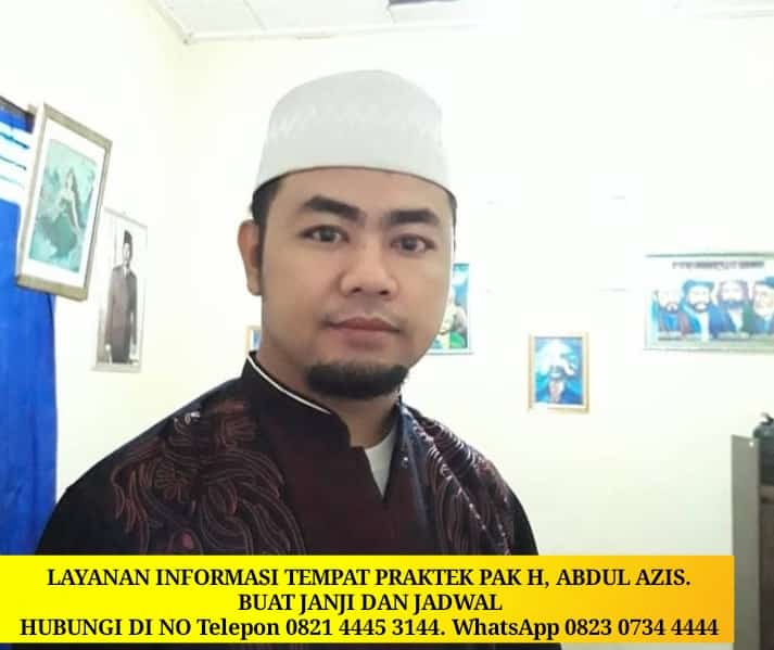 ALAMAT PRAKTEK JALAN KRESNA, JATIMULYO, KEC, JATI. KABUPATEN KUDUS JAWA TENGAH. UNTUK LAYANAN INFORMASI TEMPAT PRAKTEK PAK H. ABDUL AZIS HUBUNGI TERLEBIH DAHULU DI NO TELPON 0812 7721 7788/ WA. 08564 3444 4922